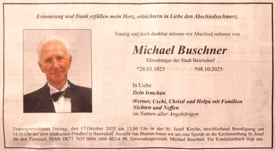 Am 8. Oktober 2025 verstarb unser langjähriges Fördermitglied Michael Buschner im Alter von 100 Jahren.